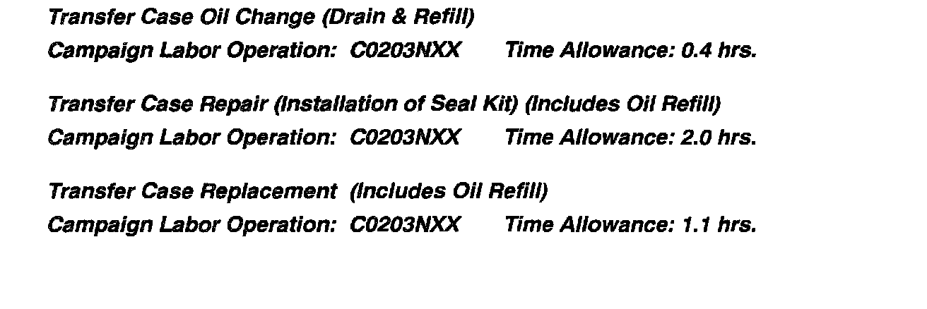 Inspect the transfer case for leakage. If it is not leaking, change the transfer case fluid. If there is leakage, re-seal the transfer case with the Repair Kit as instructed in this bulletin. If the transfer case is cracked or if there is internal gear damage, replace the transfer case. (Refer to the PARTS INFORMATION section of this bulletin for details regarding ordering a new transfer case.)