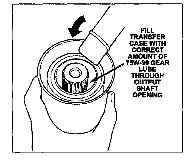 Be sure to use the correct amount of gear lube in each transfer case. Overfilling the transfer case can cause extensive powertrain damage.