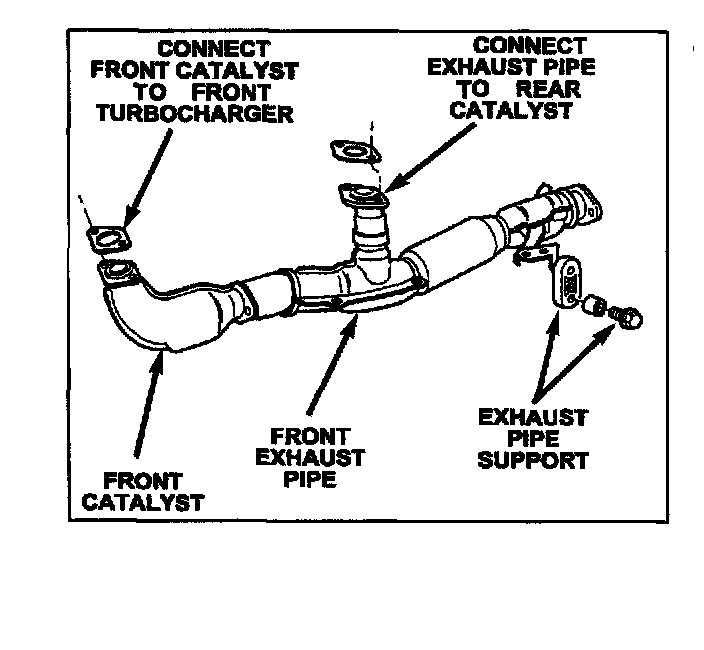 8. Using new exhaust gaskets and nuts, reconnect the front exhaust pipe to the front turbocharger outlet and the rear catalytic converter (Figure 26). Tighten the exhaust nuts to 37 ft-lbs (50 Nm).