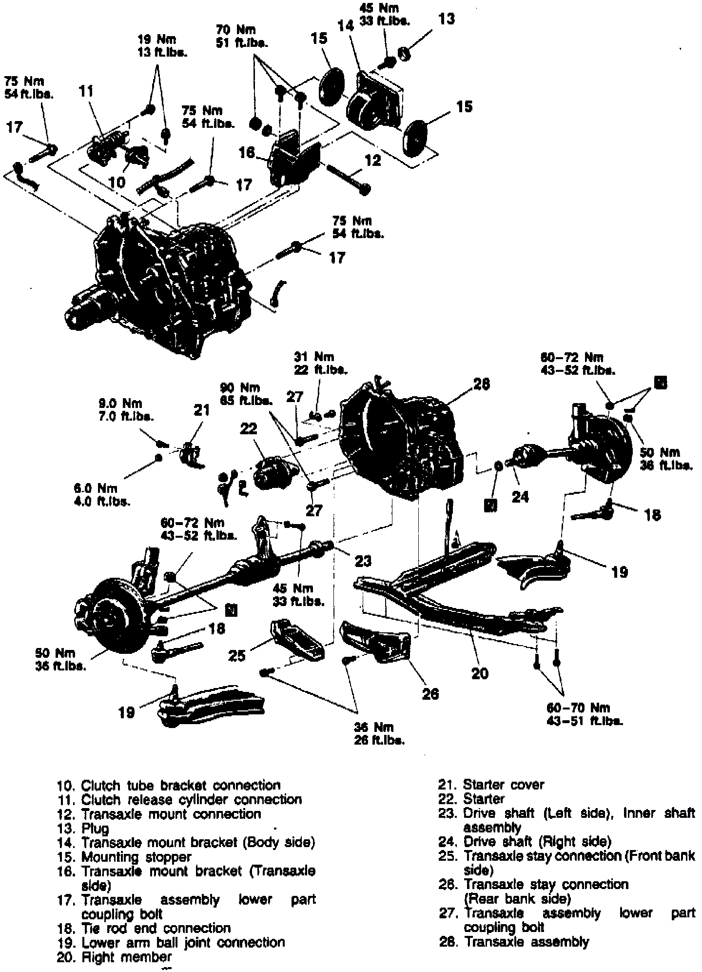 e. Torque transaxle mount bracket bolts to 51 ft. lbs.