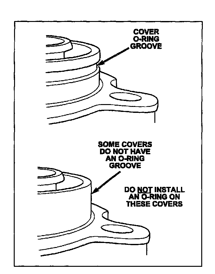 Some early production 5-speed transfer cases did NOT have a cover 0-ring. However, some of these covers do have an O-ring groove. A new cover O-ring MUST be installed if the cover has an 0-ring groove. If the cover does NOT have an 0-ring groove, DO NOT install a cover 0-ring.