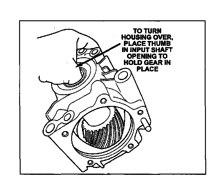 19. Place your thumb into the input shaft opening to hold the gear in position and then turn the gear housing over.