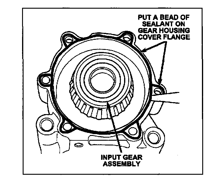 20. Run a bead of sealant (Mitsubishi Transmission Gasket Sealant A990ZC1X02) on the gear housing cover flange.