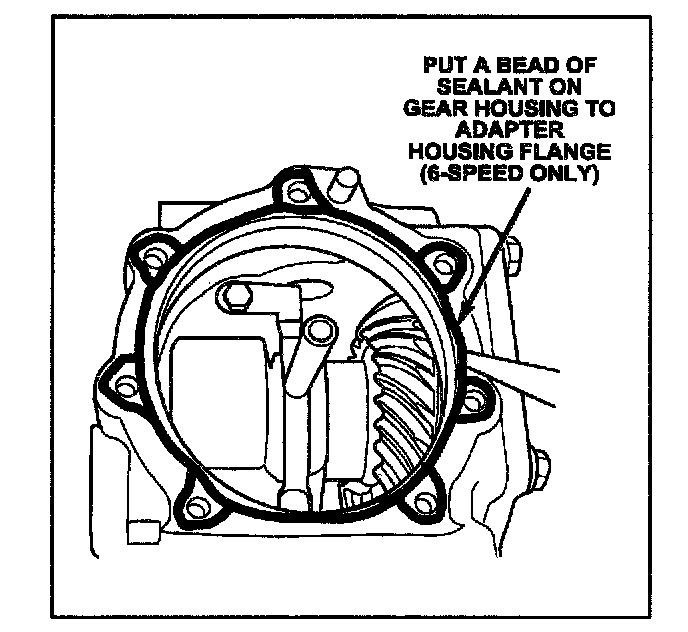 25. FOR 6-SPEED TRANSFER CASES ONLY: Put a bead of sealant (Mitsubishi Transmission Gasket Sealant A990ZC1X02) on the gear housing flange.