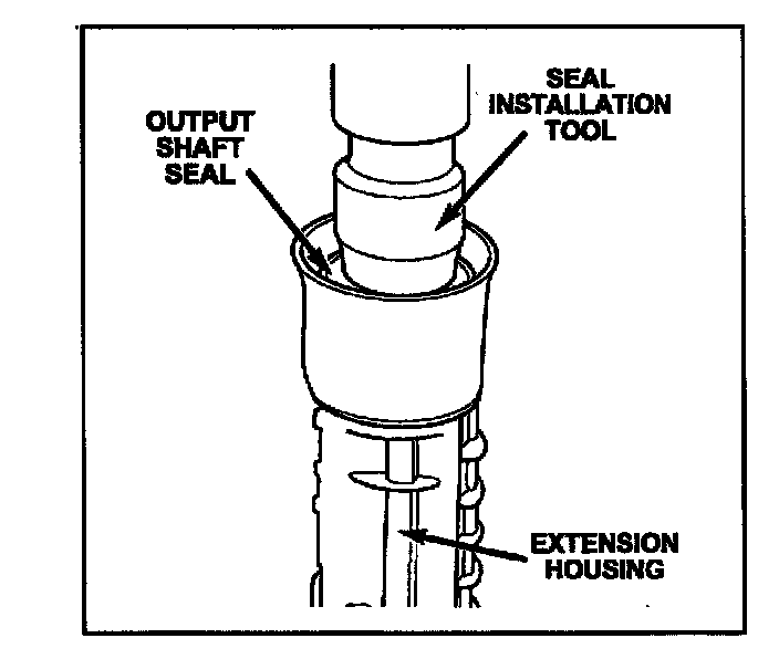 14. Carefully remove the output shaft seal. To remove the seal, place a flat blade screwdriver under the seal with the screwdriver shaft resting on the extension housing cuff. Remove the seal by quickly hitting the screwdriver handle and popping the seal from its seat.