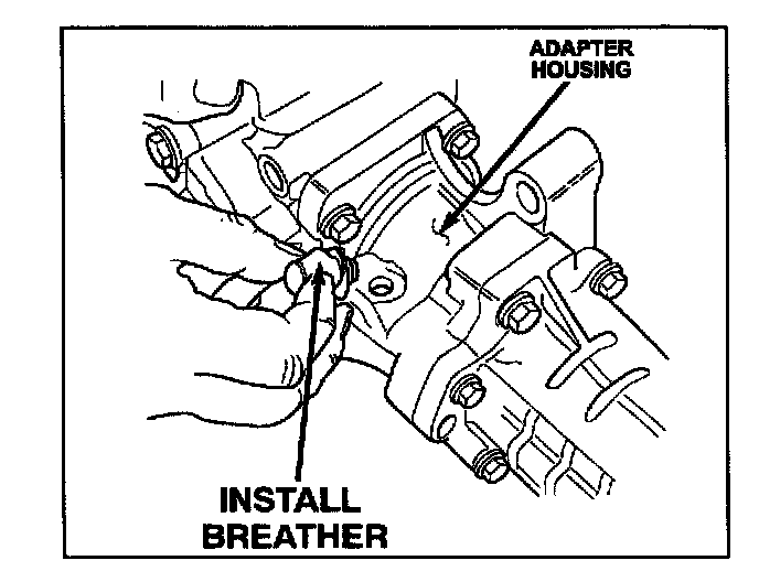 33. Clean the transfer case breather and seat, apply Mitsubishi Weatherstrip Adhesive (A99OZC1XO3) around the breather hole and then install the breather.