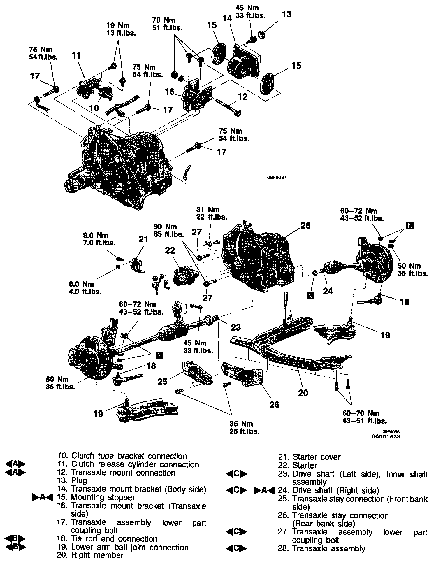 (A) CLUTCH RELEASE CYLINDER / TRANSAXLE MOUNT CONNECTION