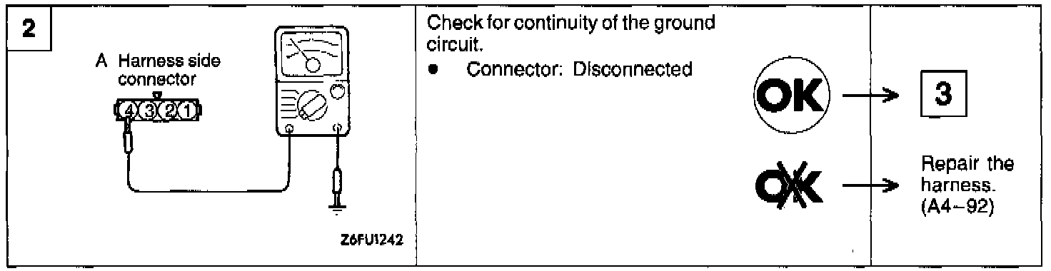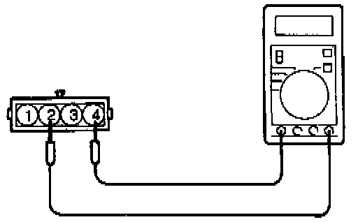 (3) Connect a pointer type ohmmeter between terminal (4) (sensor ground) and terminal (2) (sensor output).