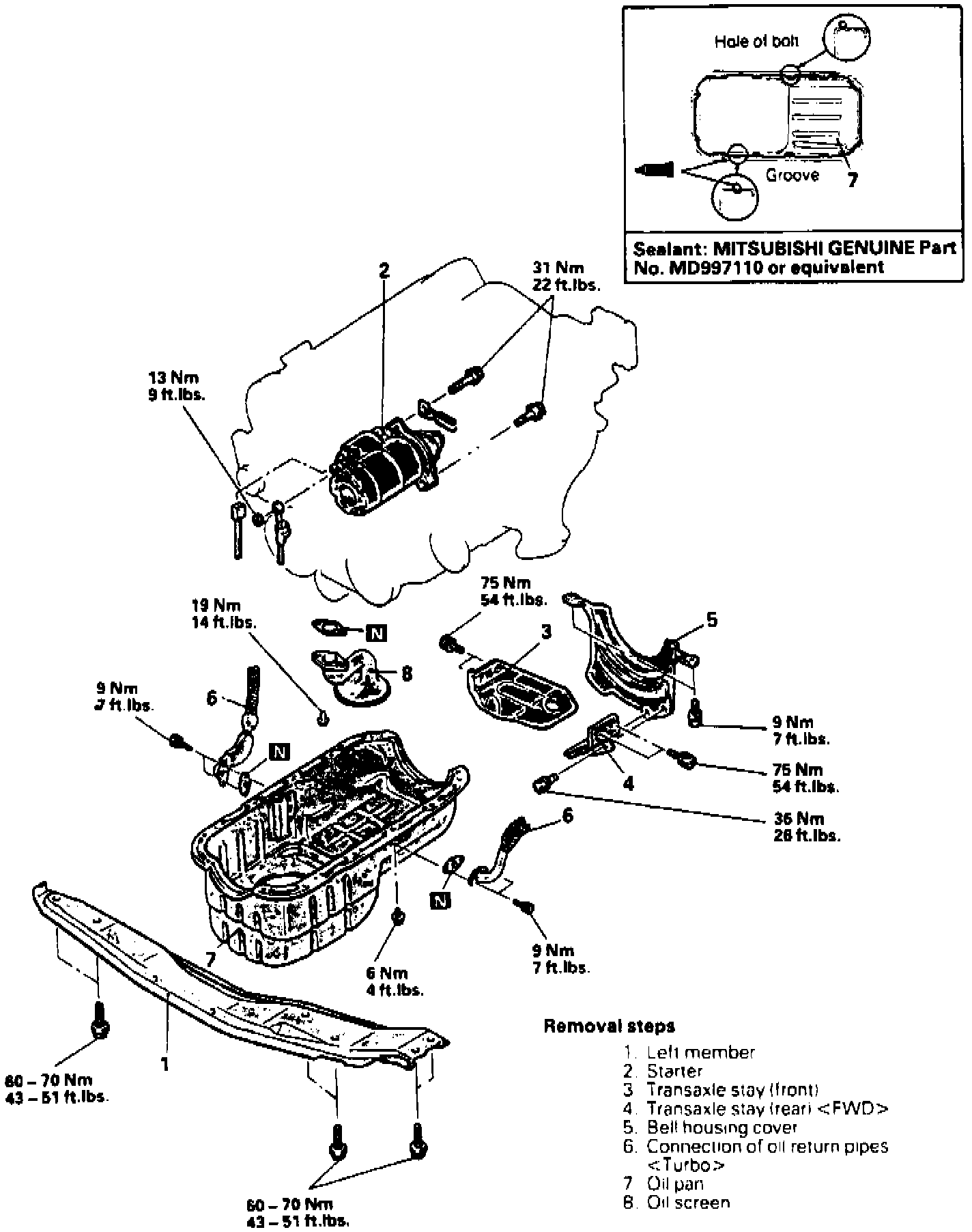 a. Apply a 0.16 inch diameter bead of sealant around oil pan flange.