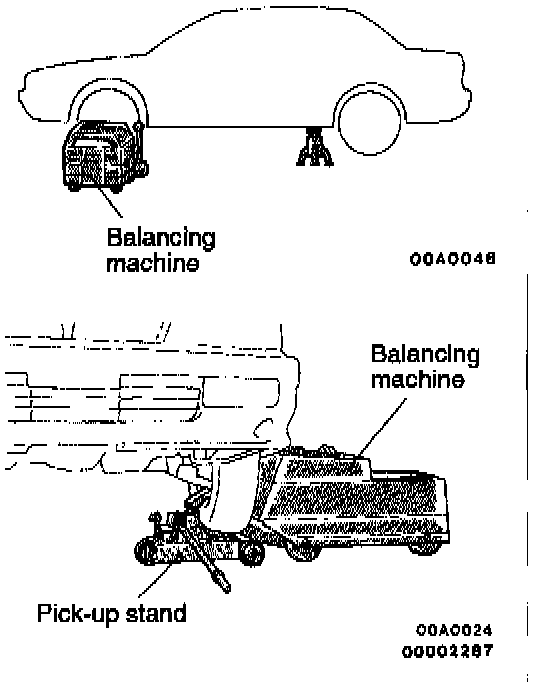 2. Jack up the rear wheels, and then, after setting a pick-up stand and balancing machine in place, follow the same procedure as for front wheel measurements.