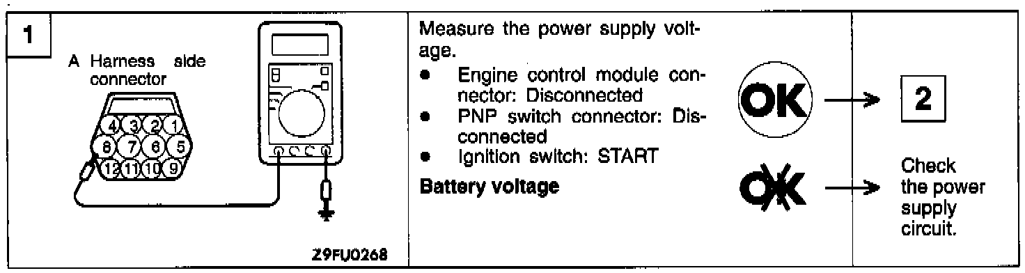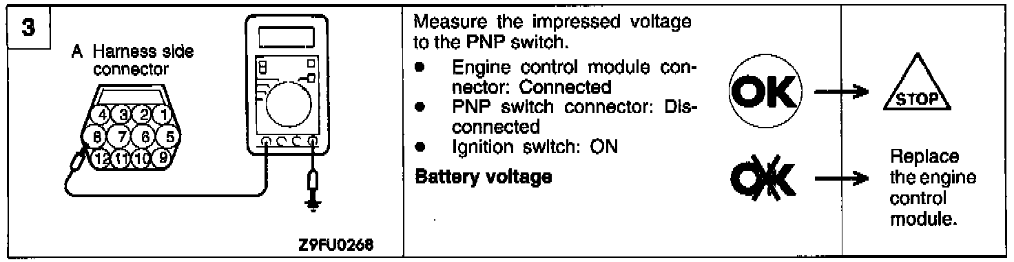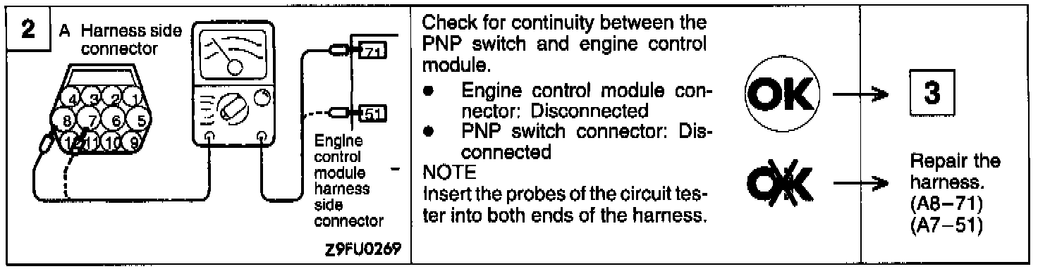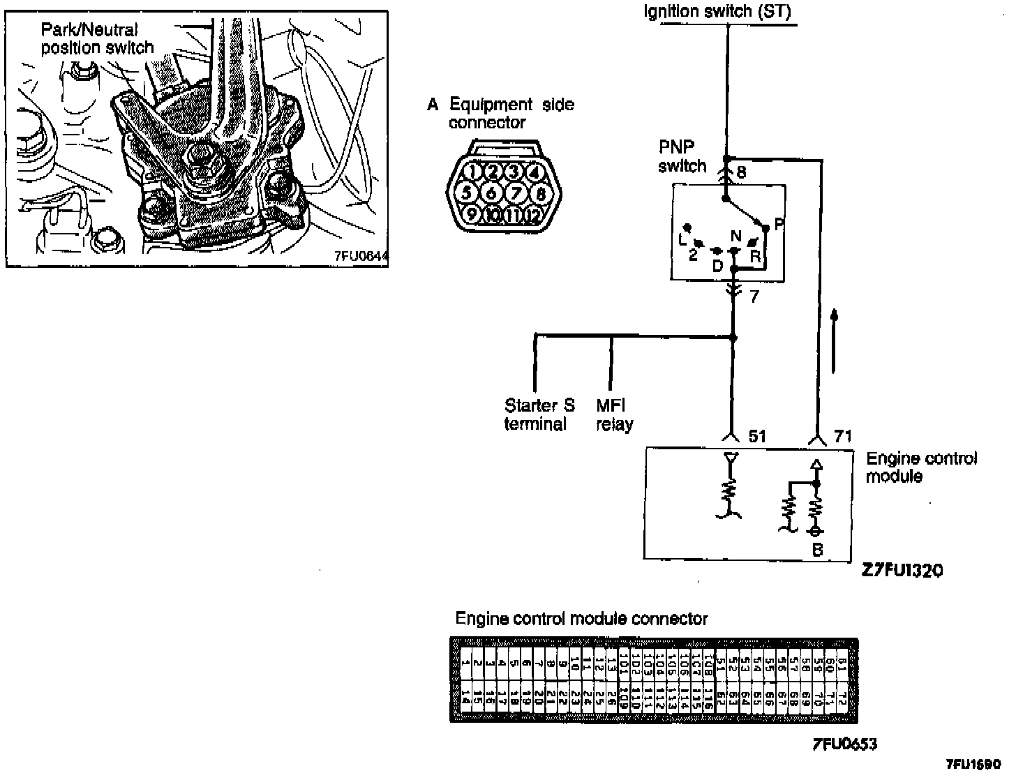 Hint: If the park/neutral position switch harness and individual part checked good but the park/neutral position switch output is abnormal, poorly adjusted control cable is suspected.