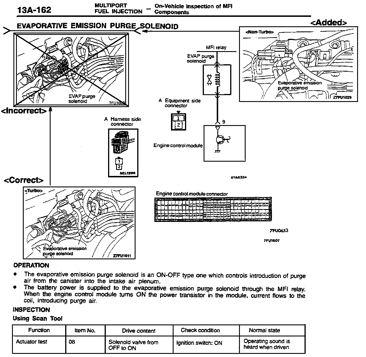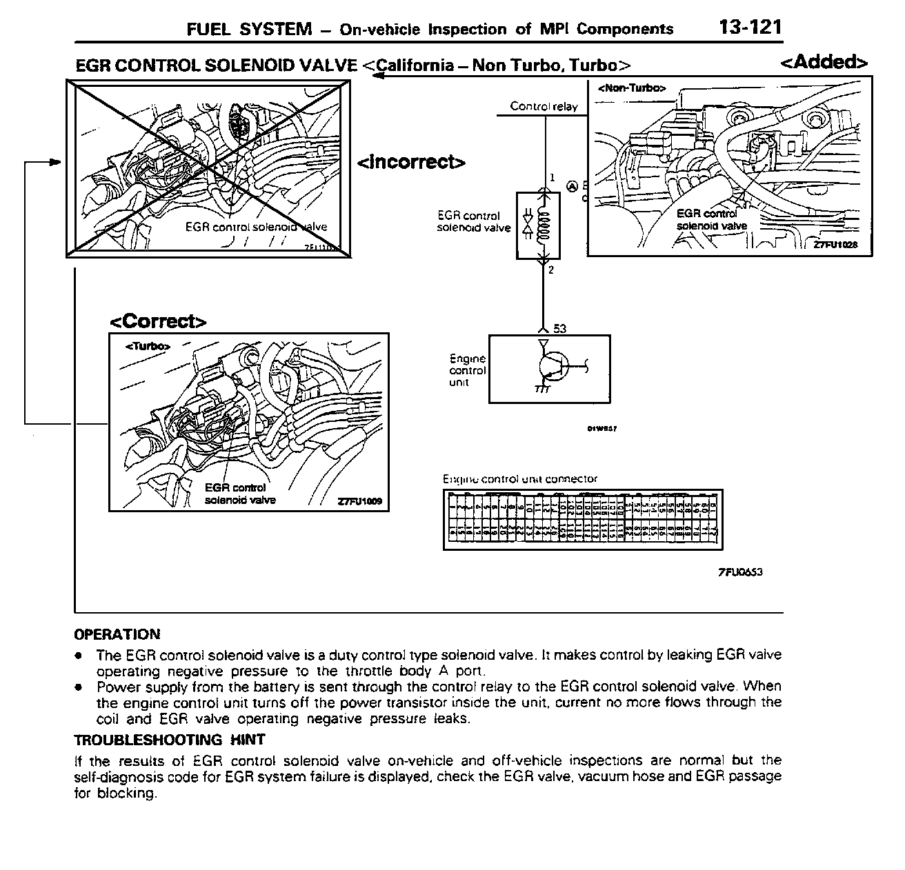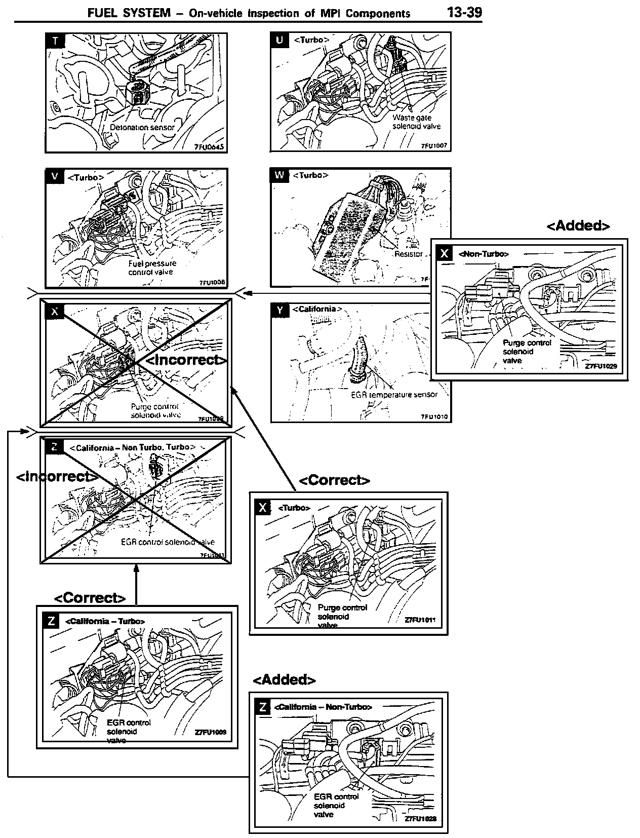 The locations of the EGR control solenoid valve and purge control solenoid valve are incorrectly shown on the affected service manual pages. This bulletin contains the correct locations of these items.