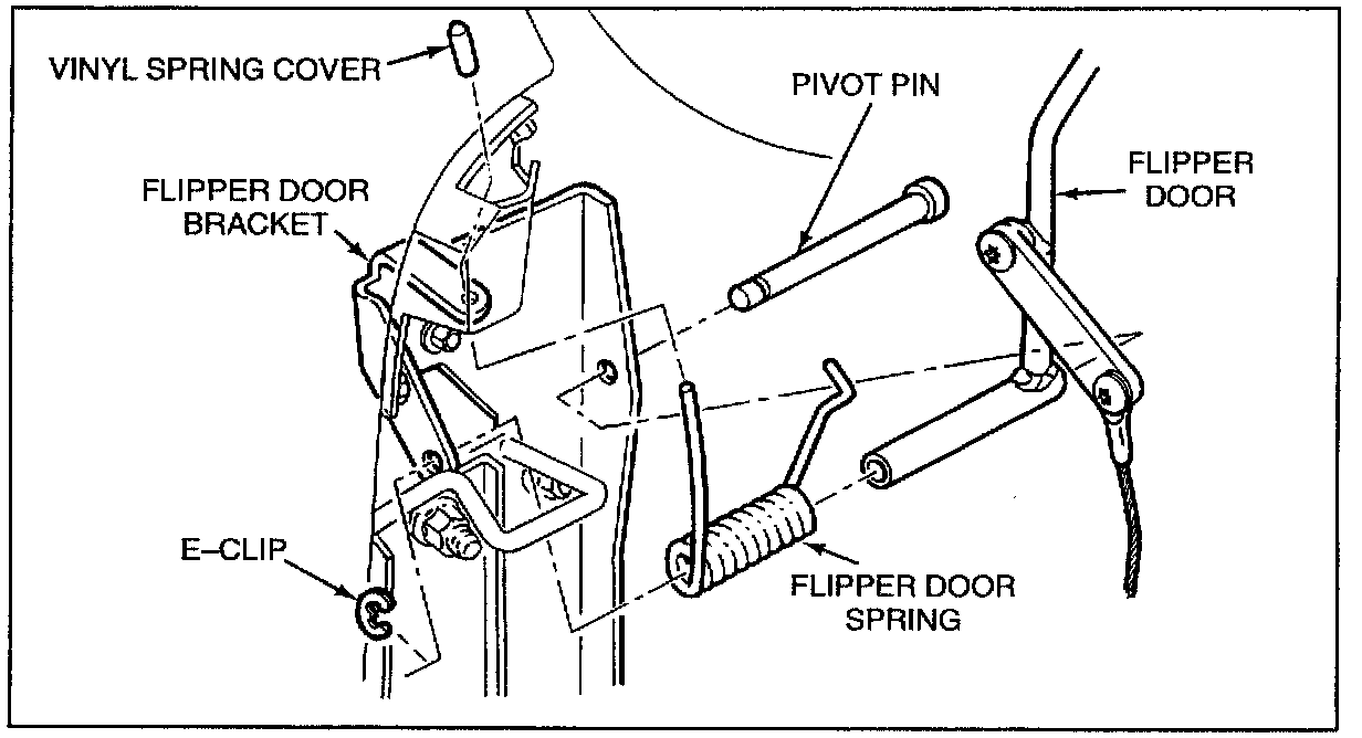 8. Work the spring back into the bracket, again using the rotating action. Position the flipper door into the bracket then insert the pivot pin.