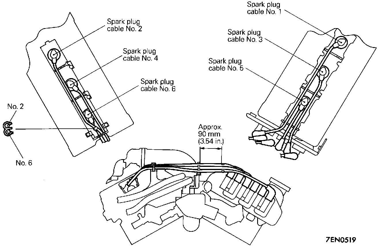 3. Pay attention to the following items when the spark plug cables are installed.