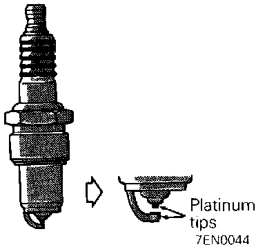 2. Cleaning of the platinum plug may result damage the platinum tip. Therefore, if carbon deposits must be removed, use a plug cleaner and complete cleaning within 20 Seconds for protection of the electrode. Do not use wire brushes.