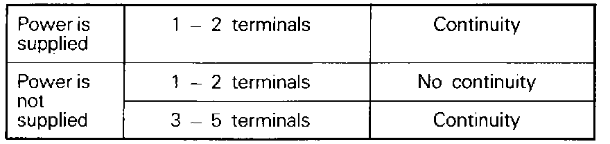 2. Connect battery power source to terminal 5. Check circuit between terminals with terminal 3 grounded.