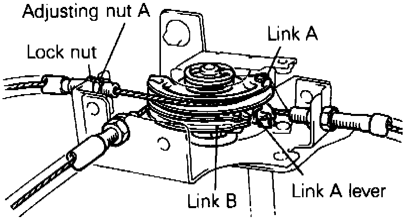 3. Determine point at which intermediate link (A), Fig. 19, contacts link (B), then unscrew adjusting nut (A) approximately one full turn in this position.