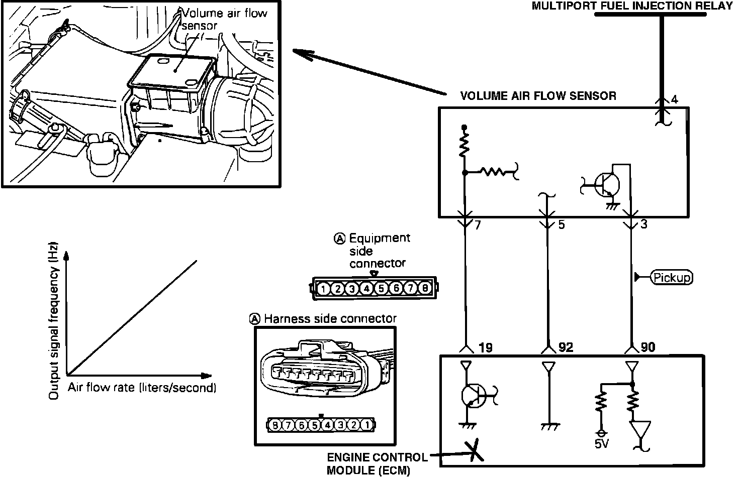 If the air flow sensor output frequency is other than - when the ignition switch is turned on (but the engine is not turning, suspect a faulty air flow sensor or engine control module.
