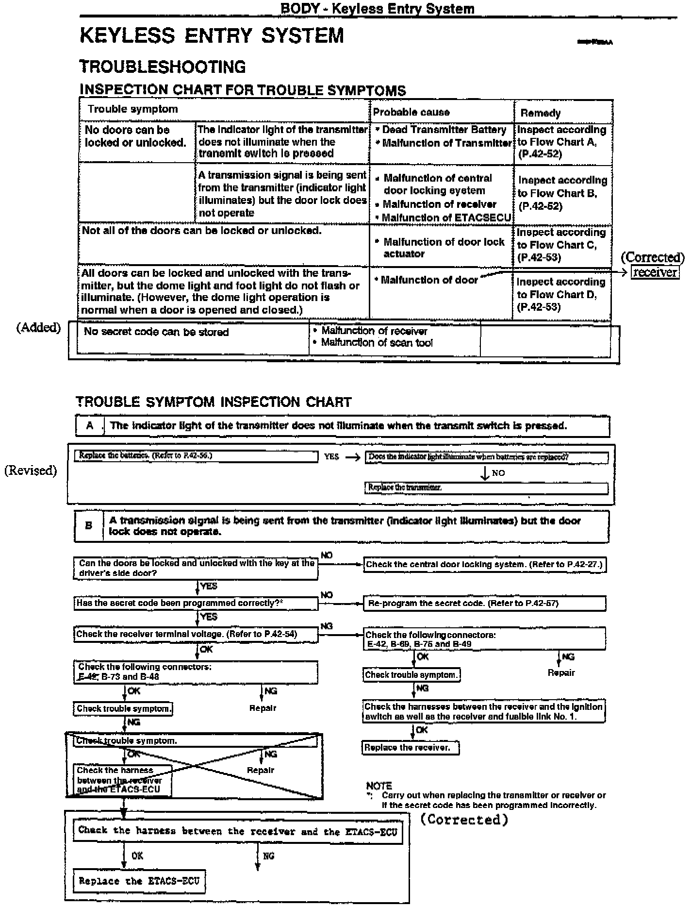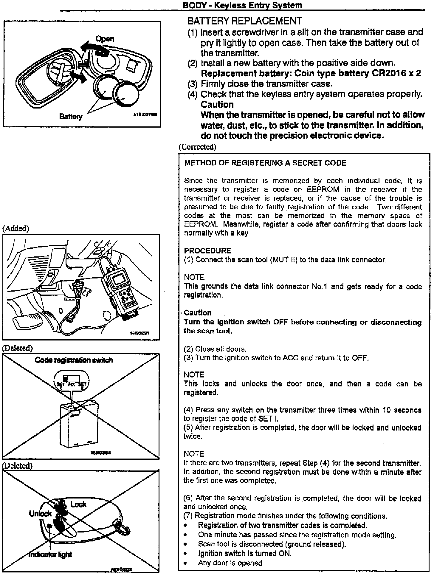 KEYLESS ENTRY SYSTEM - SERVICE MANUAL REVISION