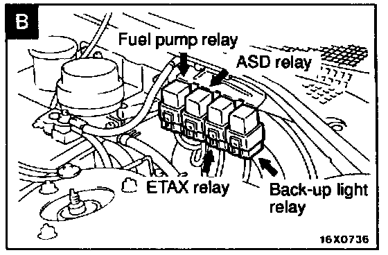 Fuel Pump, ASD, ETAX, Back-Up Light Relay: