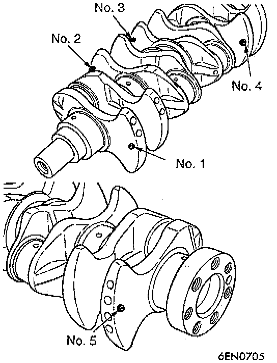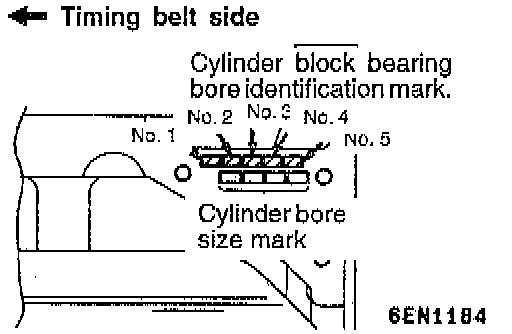b. The cylinder block bearing bore diameter identification marks are stamped at the position shown in the illustration numerically from the front of the engine, beginning at No. 1.