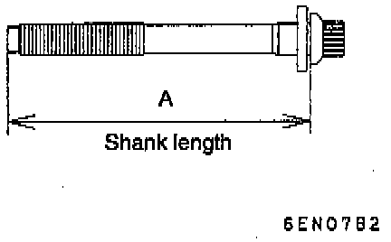 5. When installing the bearing cap bolts, check that the shank length of each bolt meets the limit (A): maximum 71.1 mm (2.79 inch). If the maximum limit is exceeded, replace the bolt.