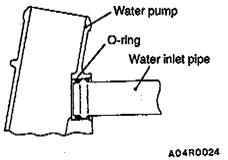 4. Insert the O-ring to the water pump groove, and coat the circumference of the O-ring with water or engine coolant. By coating with water or engine coolant, the insertion to the cylinder block will become easier.