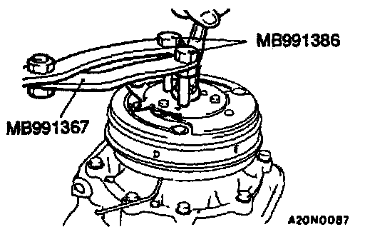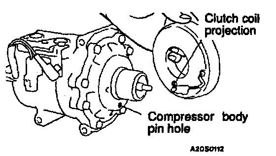 When installing the clutch coil to the NC compressor body, install so that the pin hole of the A/C compressor body and the clutch coil projection are aligned.