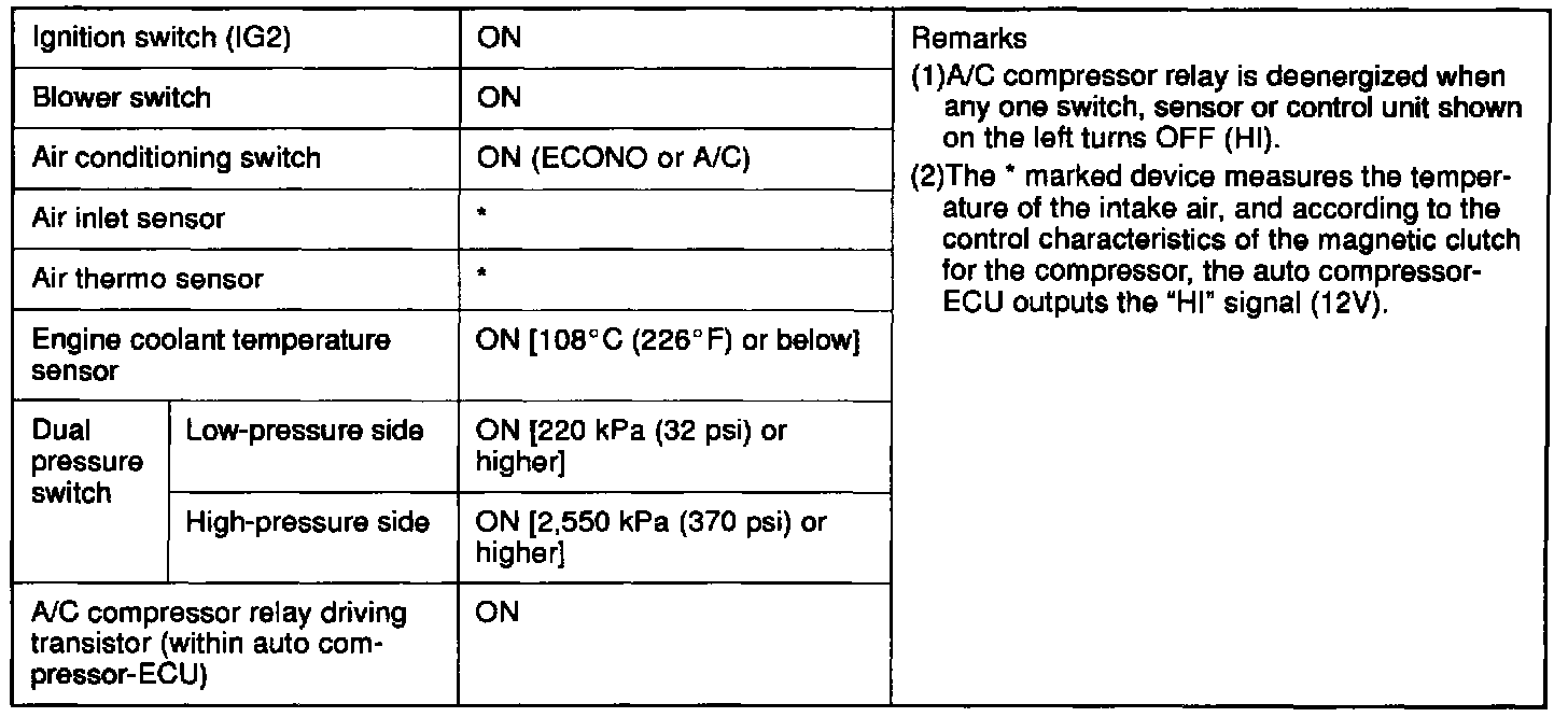- When these three sensors are all activated, the dual pressure switch is ON, and the ignition switch, blower switch, and air conditioning switch are ON, the A/C compressor relay is energized.