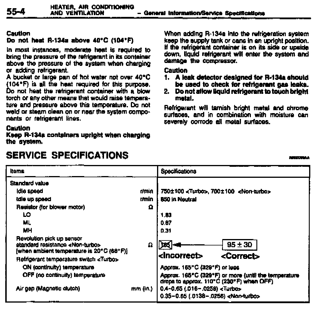 The resistance value for the revolution pick-up sensor is incorrect in the affected service manual pages. The correct resistance is 95 ± 30 ohms. This bulletin contains corrected service manual pages for this resistance.