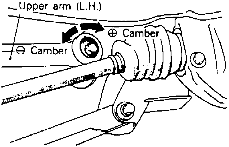 Adjust camber by moving mounting bolt located on crossmember side of upper arm. One graduation is equivalent to about 1/4° in camber,