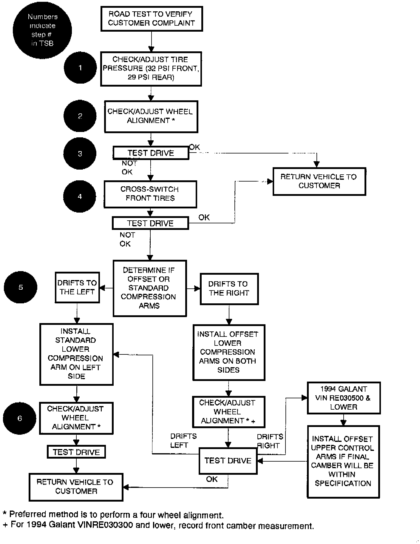 c. On 1994 Galants with VIN RE030500 and lower only, if steering drift to the right is observed, go to Step 8.