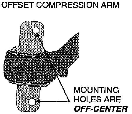 On offset lower compression arms, the mounting holes in the rear bushing are off-center as shown.