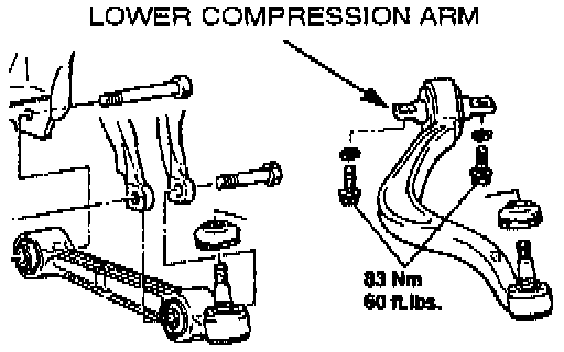 5. a. If steering drift is to the left, replace the front suspension lower compression arms. Refer to the PARTS INFORMATION section of this bulletin for part numbers. Refer to section 33 in the appropriate service manual for replacement instructions. Then continue with Step 7.