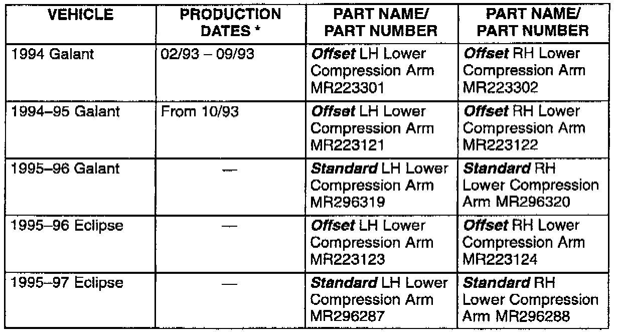 On vehicles originally equipped with offset lower compression arms (refer to the chart shown in this bulletin), steering drift to the left may be corrected by installing a standard compression arm on the left side only.