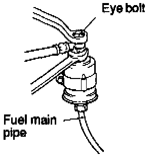 Hold the fuel filter with a spanner and loosen the flare nut. Then disconnect the fuel main pipe.