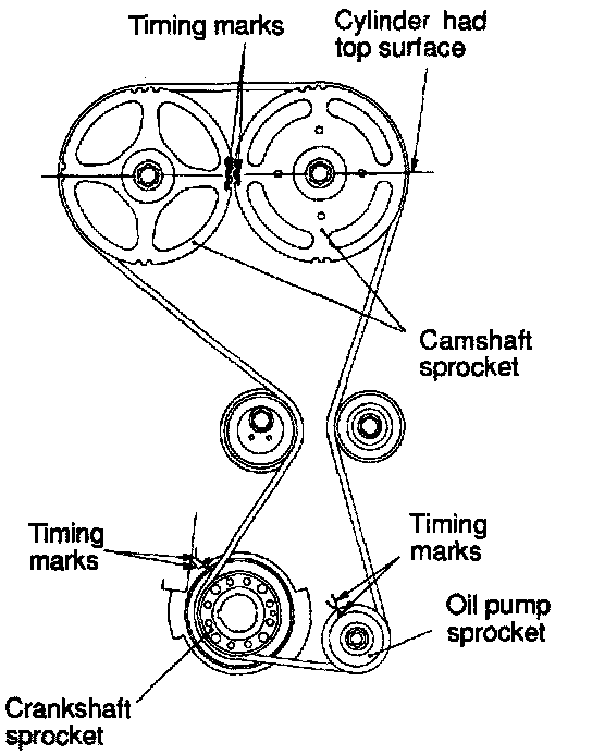 Incorrect removal or installation of the timing belt can result in damage to internal engine components.