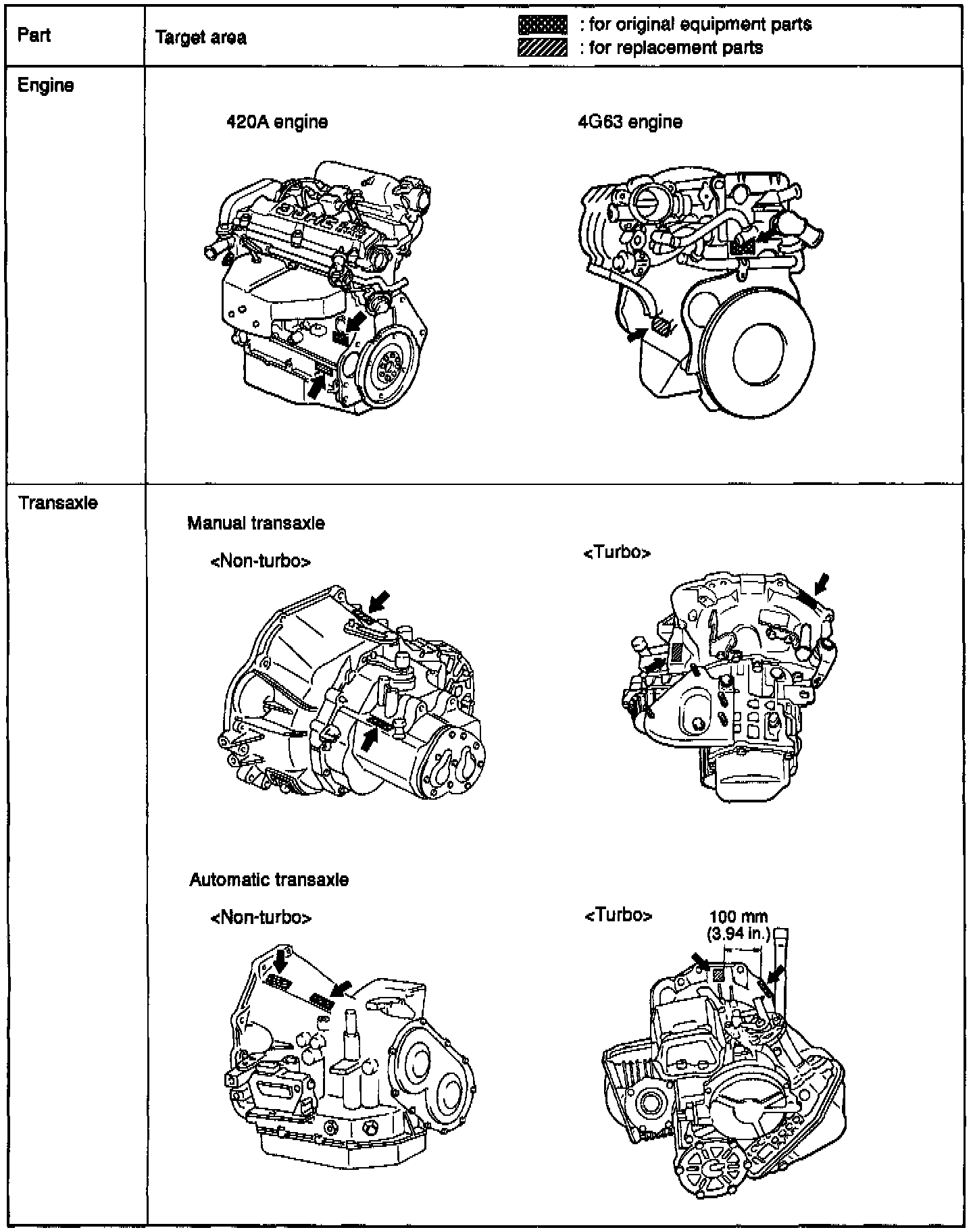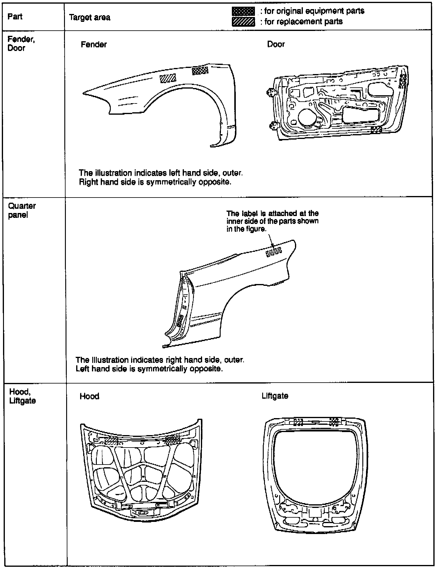 In addition, a theft-protection label is attached to replacement parts for the body outer panel main components, and the same data are stamped into replacement parts for the engine and the transaxle.