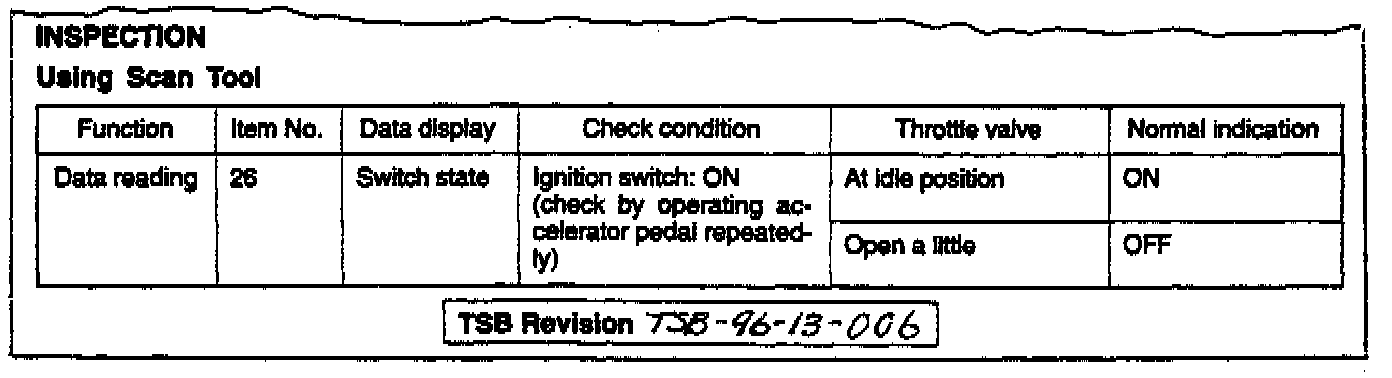 Idle Switch Inspection - Service Manual Revision
