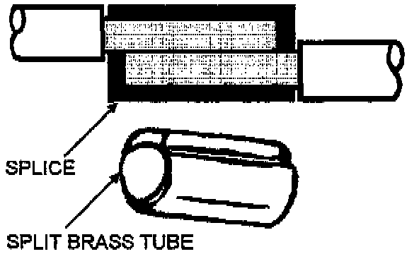 a. Insert the stripped ends of the wires into a split brass tube (solder splice) if available, and crimp the wire ends together, making a good mechanical joint.