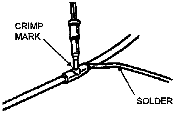 b. Apply solder to the joint at the crimp mark, using only enough solder to achieve a good connection.