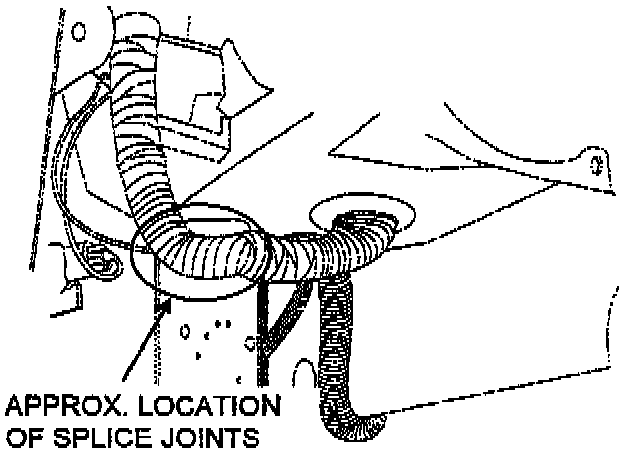 8. Locate the two splice joints. You must remove some corrugated tubing and electrical tape from the harness in order to locate the splice joints.