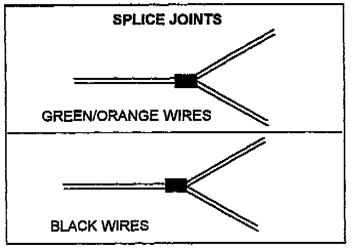 11. Reinstall the splice joints inside the corrugated tubing. Wrap electrical tape around the tubing to prevent the wires from protruding.