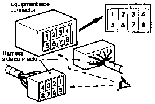 - When checking a waterproof connector for circuit continuity, be sure to use the special tool, Test Harness. Never insert the test probe from the harness side as this causes loss of waterproof characteristics and corrosion may result. There are various test harnesses and the appropriate one for the connector being tested should be used.