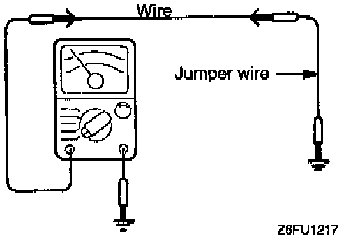 - When checking an open circuit of a wire with its ends physically separated, ground one end using a jumper wire and check the continuity between the other end and ground. Repair the wire if there is no continuity.