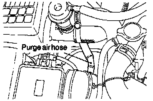 5. Disconnect the purge air hose from the air intake hose and connect a hand vacuum pump to the purge air hose.