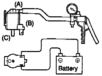 4. Check air tightness by applying a vacuum with Voltage applied directly from the battery to the EGR control solenoid valve and without applying Voltage.