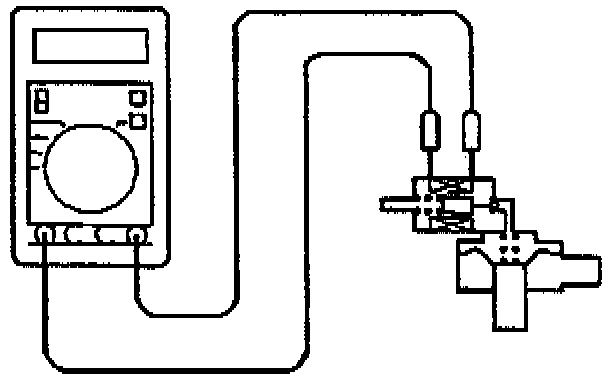 e. Measure the resistance between the solenoid terminals. Specification is 33-39 ohms at 20° C (68° F).