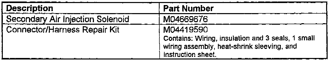 2. If airflow and/or the solenoid terminal resistance is not within specification, install a new, improved secondary air injection solenoid listed in the PARTS INFORMATION section of this bulletin.
