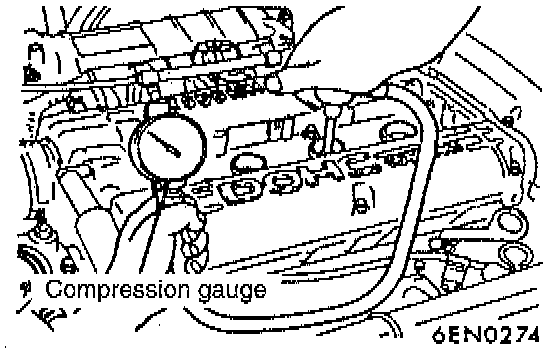 7. Crank the engine with the throttle valve fully open and measure the compression pressure.
